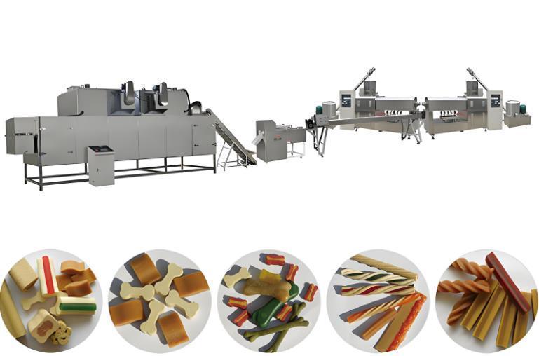 - La machine à mâcher les aliments pour chiens peut produire des collations à mâcher pour chiens et des aliments semi-humides pour animaux de compagnie.